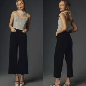 Anthropologie Colette Black Wide Leg High Rise Pants Crop Women's Size 6
