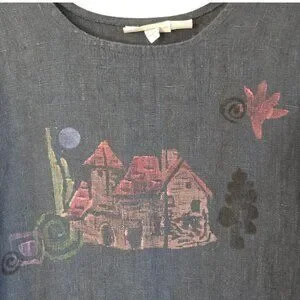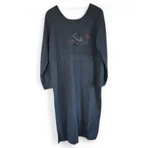 Vintage Lucky & Izzy M/L Linen Long Sleeve Dress Hand Painted Wearable Art Boho