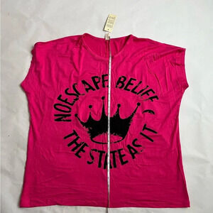 Oh Oh Women Pink Bright Printed Short Sleeve T-Shirt Size One Size NWT