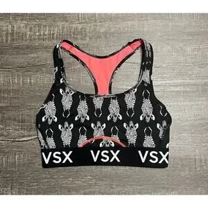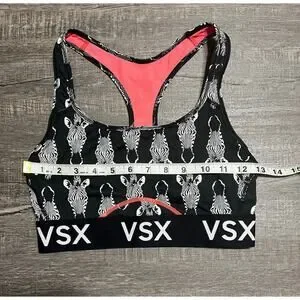 Victoria's Secret VSX Racerback Sports Bra, Black and Pink Zebra, Size S