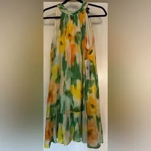 Vibrant MSK Women's Printed Sleeveless Dress - Beach Glass - Features green, yellow, and orange hues. NWT