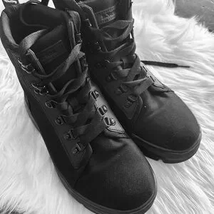 Like new! My daughter grew out of these boots before they were even broke in. Only worn a few times. I feel these run a little big. I wear 7.5 women’s and I have these boots in a 7 and are totally comfortable.