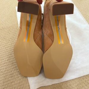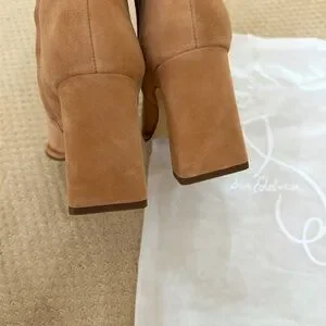 Brand new never worn -beige suede boots that rise a little above the ankles. Gold zipper detail on inner side, gold monogram on back. 3 1/2” heel. Still with the original package stuffing and dust cover bags. In perfect condition, of course, and have been stored in a professional closet. 💖