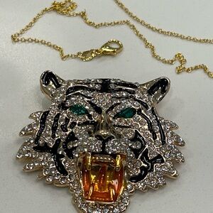 Vintage Kenneth Jay Lane Runway Tiger Brooch/Necklace with Austrian Crystals