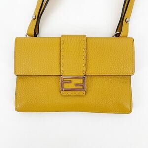 Fendi Tangerine Yellow Leather Selleria Baguette Crossbody Bag