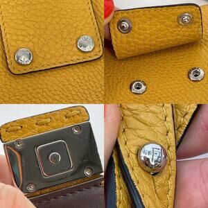 Yellow (orange undertones) nappa leather exterior with selleria stitching and silver-tone hardware with canvas lining