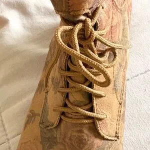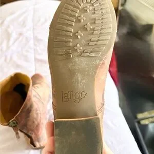 Stylish floral ankle boots by Latigo. Features a lace-up design. Perfect for casual wear, pairs well with jeans. Leather upper, balance man-made. From a smoke-free, cat-friendly home.