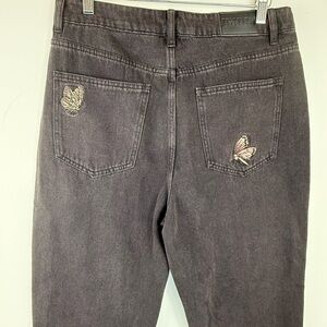 Disturbia Valerie Floral Moth Embroidered Mom Jeans