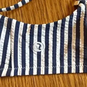 Chic lululemon seersucker bikini with navy and white stripes. Perfect for beach days.