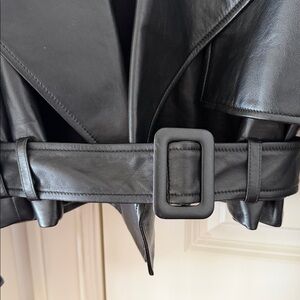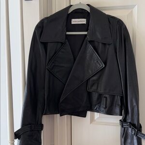 Condition like brand new. Only wore once. Size 38 which is between size 4-6. Cropped leather jacket. Buttery material. Belt can be removed.