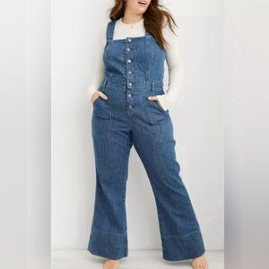 Chic denim overalls by Aerie. Features a button-up front and wider leg. In great condition, only worn a few times.