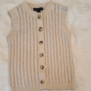 Chic and versatile sweater vest. Features a button-up front. Ideal for layering.