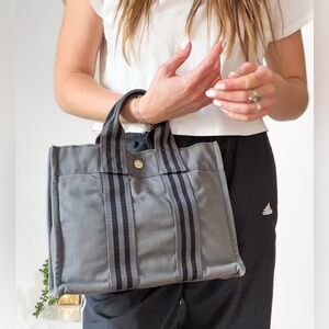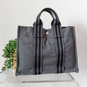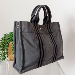 Hermes Fourre Tout Tote Canvas Bag Gray Top Handle Purse