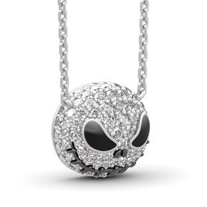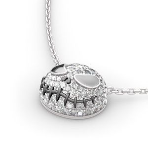 This cute and stunning necklace is certain to be cherished. Glistening with detail, a cute Jack Skeleton shimmers with sparkling stones of white Sapphire. Chic and adorable, this necklace makes a great gift - surprise her with this necklace any time of the year.