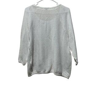 James Perse Open Knit Pullover Sweater Top Women 3 Large White Cotton Beach Boho