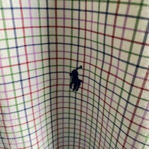 Classic Ralph Lauren shirt with multicolor plaid pattern. Features button-down collar and embroidered logo.