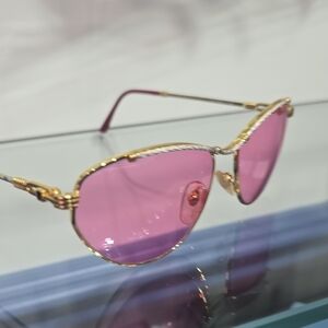 Add a touch of glamour to your look with these elegant gold and pink sunglasses. Perfect for any occasion, they combine style and sophistication effortlessly.