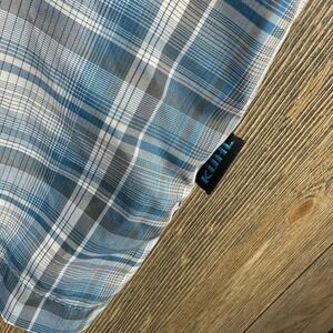 Elevate your outdoor style with this handsome KUHL shirt, where comfort meets rugged charm. This versatile button-up features a classic blue plaid pattern that's perfect for any adventure. Complete with functional chest pockets, this shirt is designed to keep your essentials close at hand while exploring the great outdoors. Ideal for a casual hike, a weekend camping trip, or a relaxed day at the cabin.