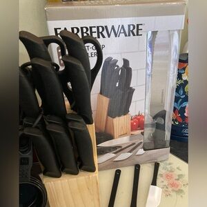 NIB Farberware Black Knife Set with Wooden Block