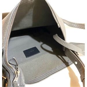 Made of softly pebbled leather. Wear as a shoulder bag or backpack. Converts easily to top handle shopper. Fully lined. Flat bottom base has scuffed leather at outer edges of base bottom of bag. See image.