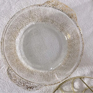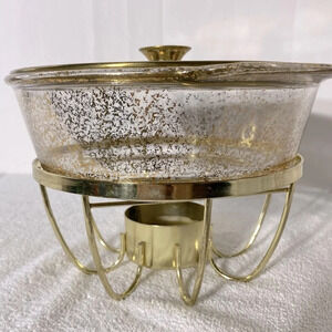 Vintage Anchor Hocking Fire King Gold Fleck Casserole & Stand Georges Briard Lid