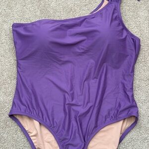 J. Crew Asymmetrical Bow Purple Lilac (Viola) One Shoulder One Piece Swimsuit Size 22. No Flaws. New With Tags!