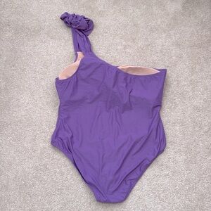 NWT J. Crew Asymmetrical Bow Purple One Shoulder One Piece Swimsuit Size 22