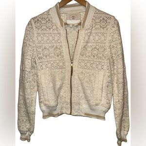 Anthropologie Hei Hei Cleo Lace Bomber Jacket Crochet Size S 100% Cotton Zip Up