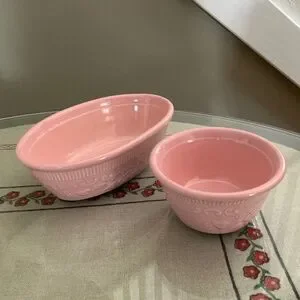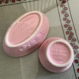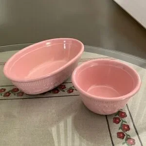 Vintage Taylor Smith Taylor TST Genuine Oven Serve Ware Pink Bowls USA Set of 2