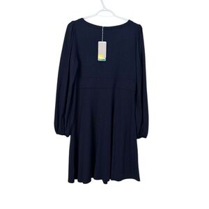 Boden NWT navy Tencel blouson longsleeve Jersey button front casual dress size 8