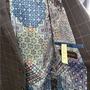 Like new size 46R Van Heusen Studio Navy Plaid/Windowpane Blazer. Cool lining! Perfect for work, church, events, Easter, dates.