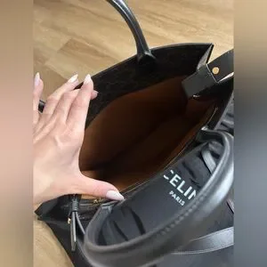 NWOT CÉLINE Black Triomphe Coated Canvas Vertical Cabas Medium