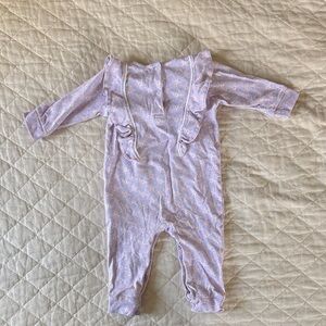Adorable lavender one piece with charming ruffle details. Perfect for a stylish and comfortable look.