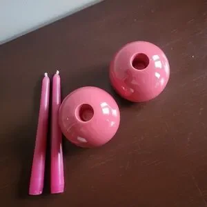 In excellent vintage condition! No noteworthy imperfections. Includes two pink 8" taper candles (unscented).