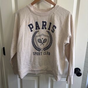 Cozy cream sweater with sporty Paris Sport Club design. Perfect for casual wear. Size 6/8.