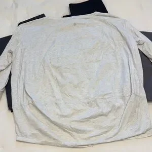 Top is the prima cotton oversized boat neck long sleeve dupe of lululemon. Heathered gray/cream