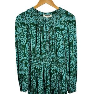 Boden Smock Tiered Jersey Floral Green Long Dress Size 4L Long sleeve Bohemian
