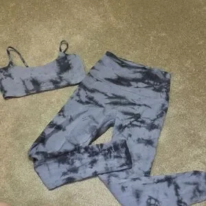 Elevate your style with this chic gray tie-dye leggings set. Perfect for casual outings or yoga sessions, this set offers comfort and fashion in one. Embrace the unique pattern and soft fabric for a standout look.