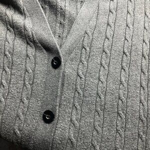Lands' End XL Gray Cable Knit Cardigan Sweater Wool Bl Minimalist