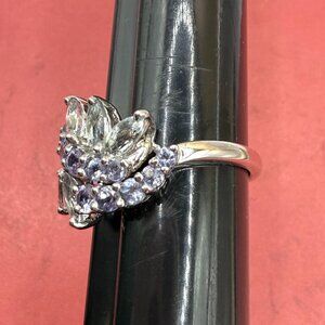 Glamorous Blue Topaz Purple Amethyst Sterling Silver Cocktail Gems Ring Size 8