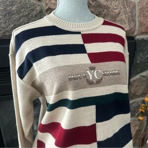 Rare Find! Vintage embroidered Paul & Shark Yachting Club colorblock sweater. Made in Italy of 100% Virgin Wool. Ribbed neck, cuffs and hem. With embroidered logo design at chest.