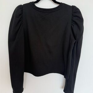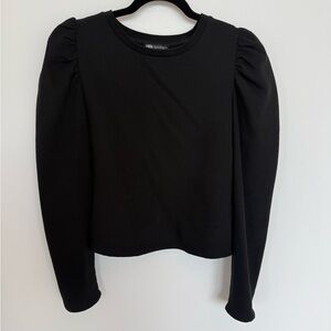Chic black top with puff sleeves. Perfect for stylish looks.