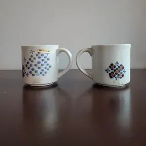 Stickers are still intact! Vintage Otagiri Japan Stoneware Mugs. Decorated with handpainted dotted florals. These mugs are in excellent condition. One mug has two discoloration spots in the interior (see last image for reference).