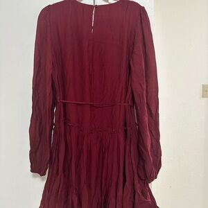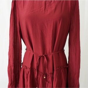 Blu ivy maroon swing dress with tie and ruffled bottom new with tag