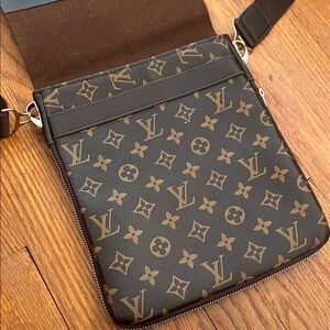 Stylish messenger crossbody bag with iconic monogram. Perfect for everyday use. adjustable strap for length. this bag is not authentic.