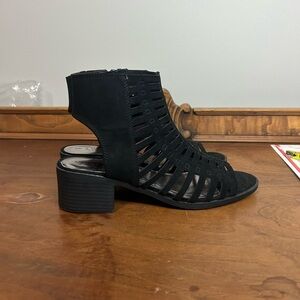 Wonder Nation Black Heeled Boots with Strappy Design, Size 5