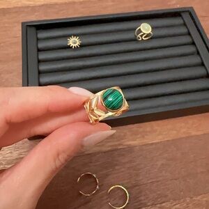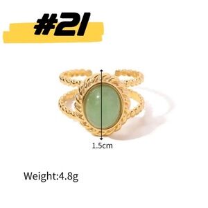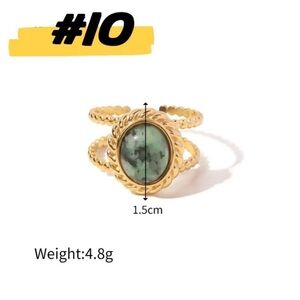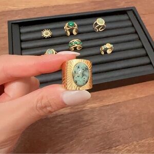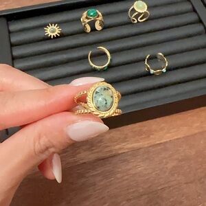 18K Gold Plated Emerald Green Vintage Adjustable Ring Set 7PCS Statement