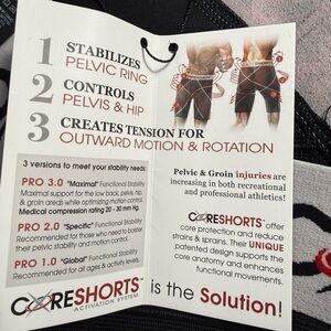 High-performance Core Shorts Pro 3.0 compression shorts designed for athletic support and stability. Features targeted compression panels to help support hips, pelvis, and core during movement. Ideal for training, workouts, sports, or recovery.