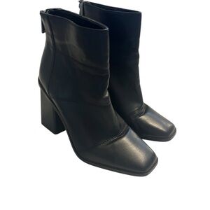 Sleek, chic, and barely worn. These Jessica Simpson ankle boots feature a smooth black faux leather finish with a modern pointed toe and a sturdy block heel for all-day comfort and style. Perfect for elevating everyday outfits or adding polish to a night-out look. The zip-back closure makes them easy to slip on while keeping a clean, streamlined silhouette. Condition: Like new, barely used Style: Classic, modern, polished, city-chic, effortless luxury Great with jeans, dresses, or tailored trousers