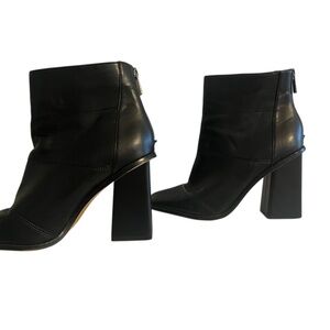 Jessica Simpson Hazell “Boss Babe” Black Leather Ankle Boots, 7, Polished Look!
